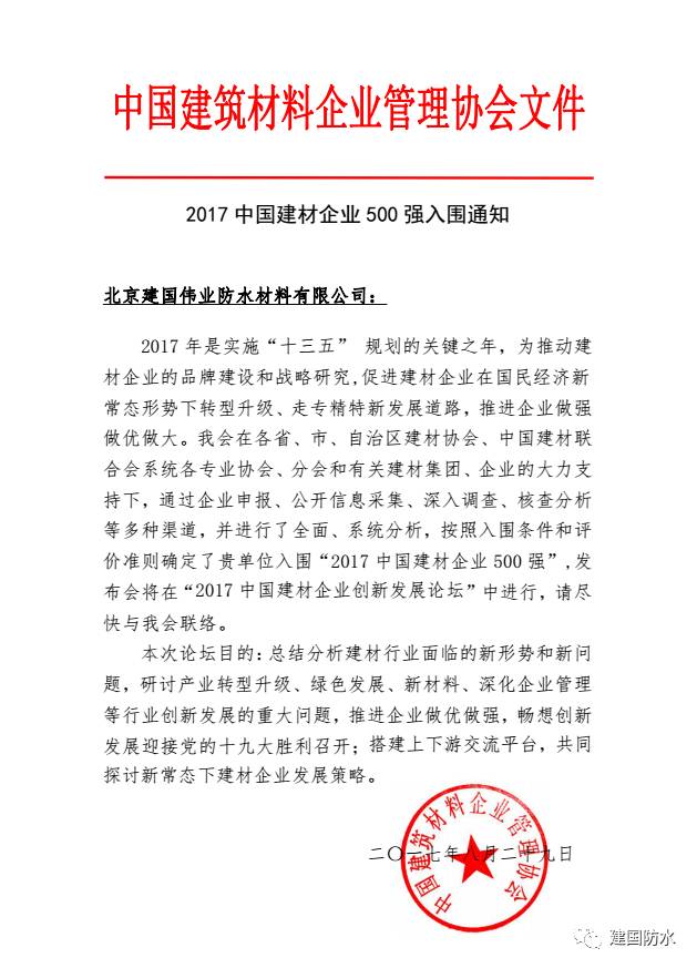 建國偉業(yè)集團作為中國建筑防水行業(yè)支柱型企業(yè)、北京市高新技術(shù)企業(yè), 30年來,懷著一顆“無漏”之心,潛心打造良心企業(yè),營業(yè)收入不斷突破,年銷售額超過16億元。